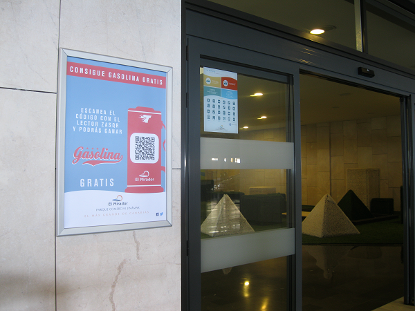 Esta semana el centro comercial El Mirador lanza una nueva campaña para sus clientes: un código QR, distribuido en distintos soportes en todo el centro comercial regala de forma instantánea cheques gasolina del valor de 5€.